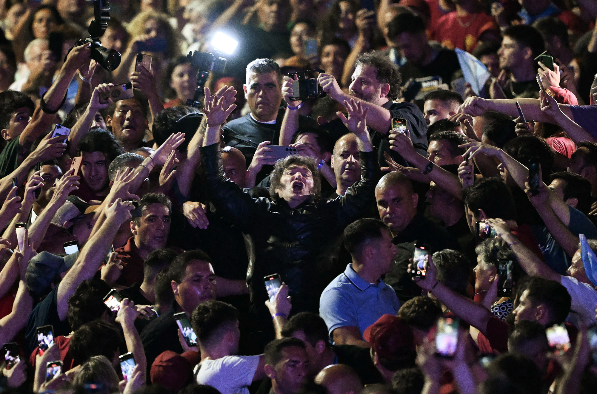 Javier Milei (C), en el acto de cierre de campaña de la Libertad Avanza, el 23 de octubre, en Rosario, provincia de Santa Fe.