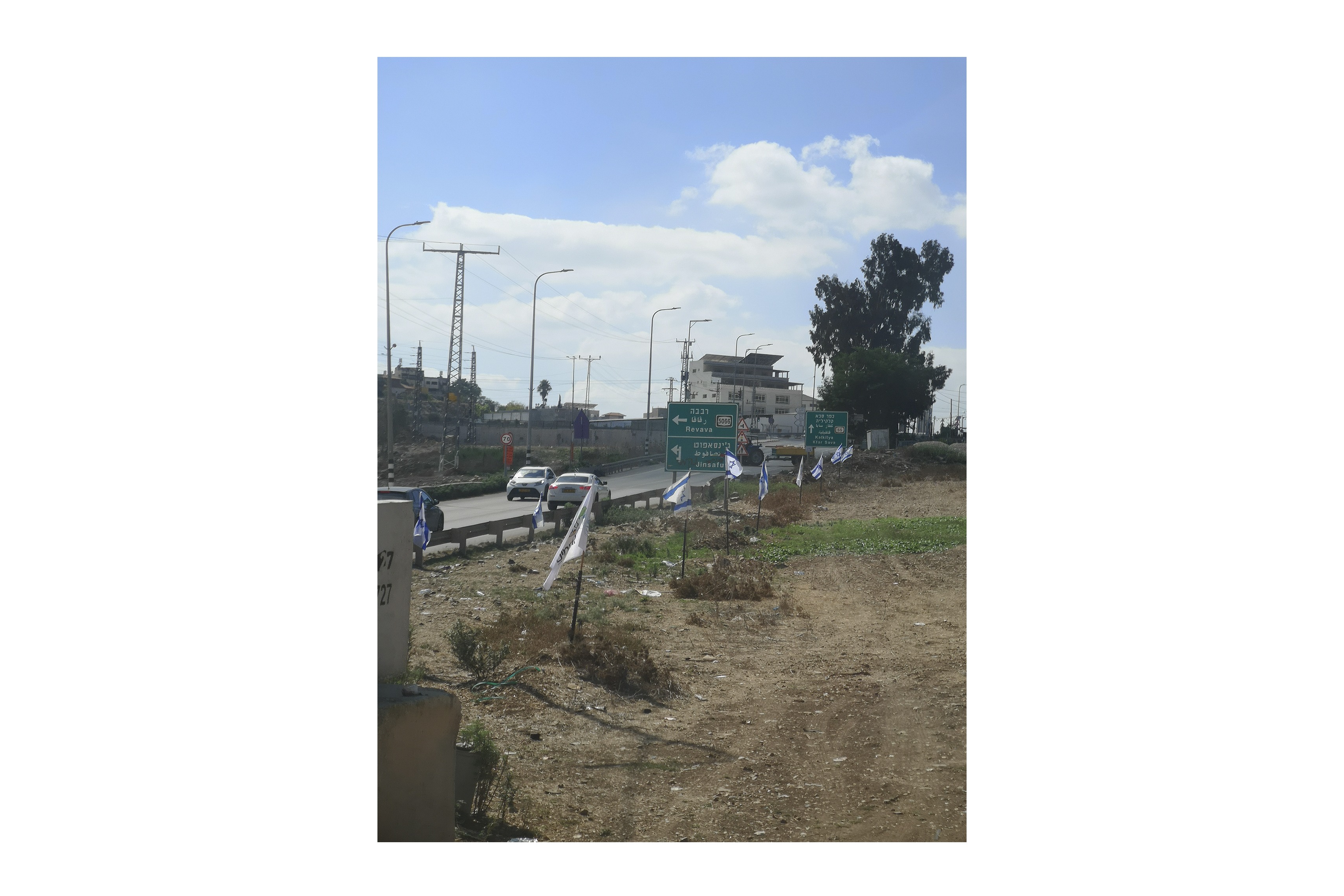 Banderas de Israel dentro de las rutas en Cisjordania.