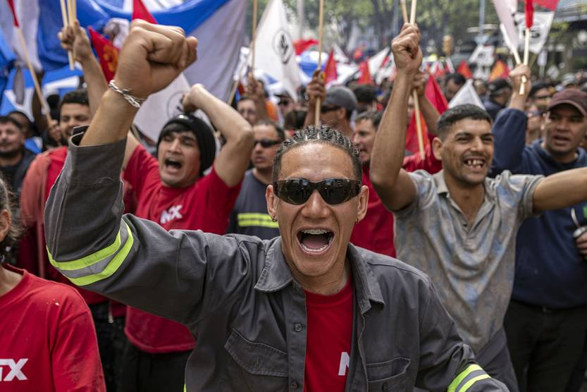 Acto del PIT- CNT, este miércoles, en el centro de Montevideo.