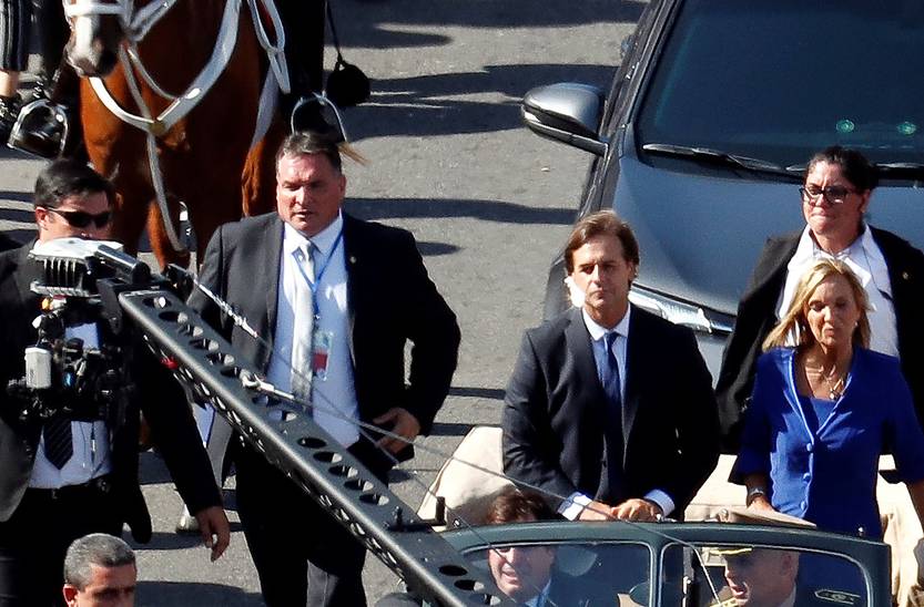 Luis Lacalle Pou (c) y su jefe de seguridad, Alejandro Astesiano (i), el 1 de marzo de 2020.
