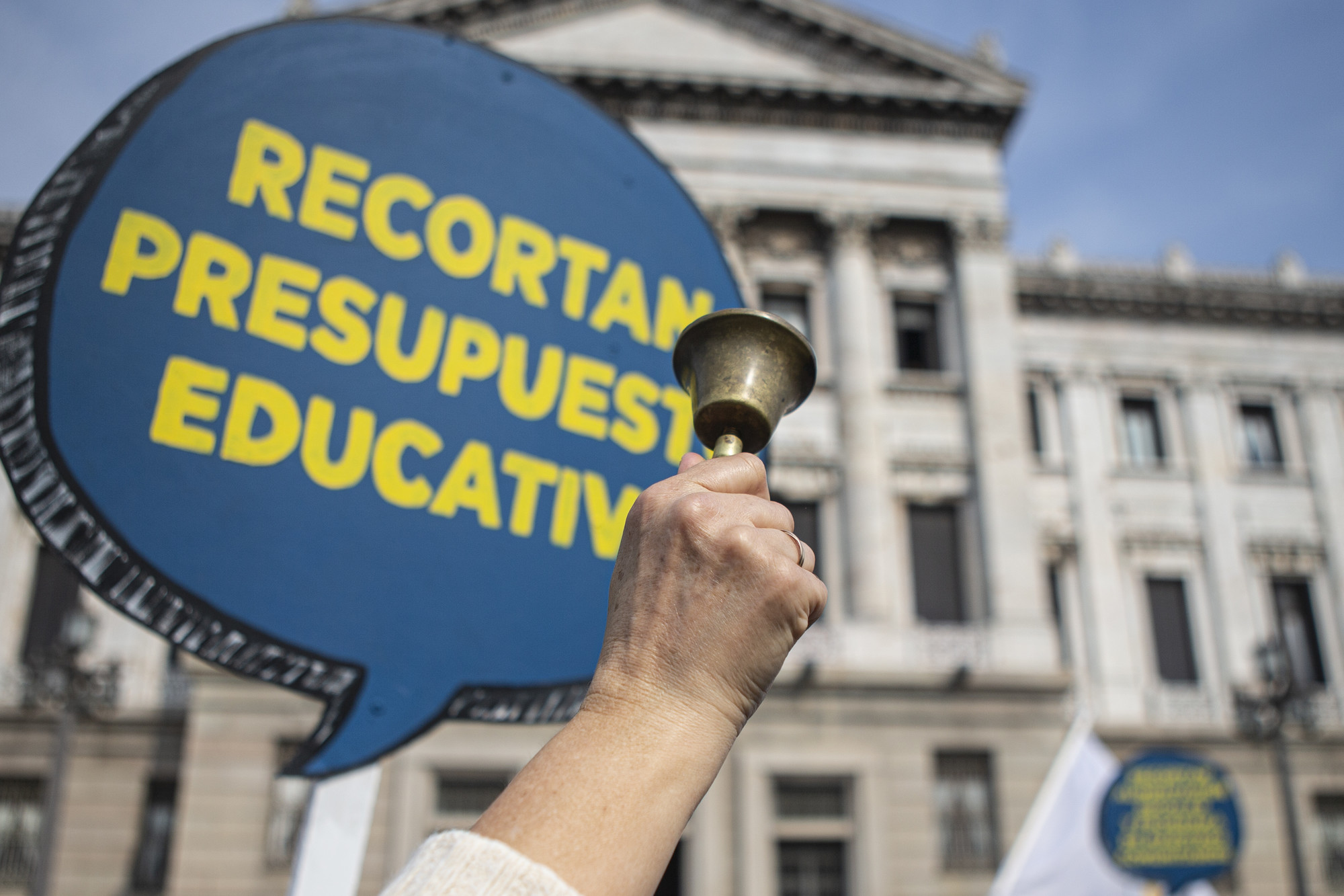 Movilización de gremios de la educación, el 18 de agosto, frente al Palacio Legislativo, en Montevideo.