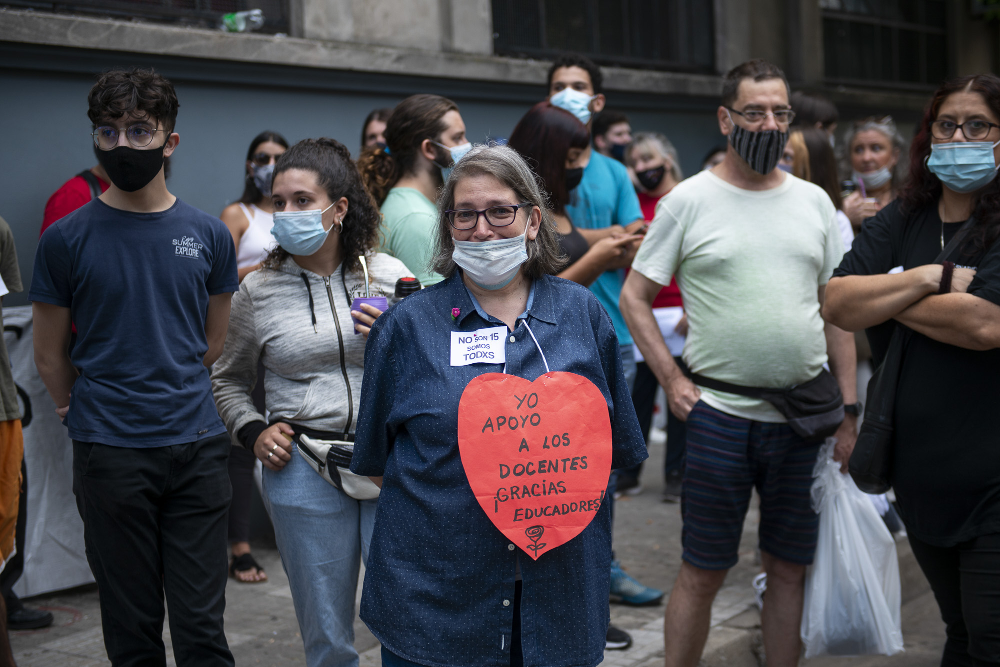 Manifestacion en apoyo a los 15 docentes sancionados, frente al Liceo 1 de San José de Mayo, el lunes 1 de marzo