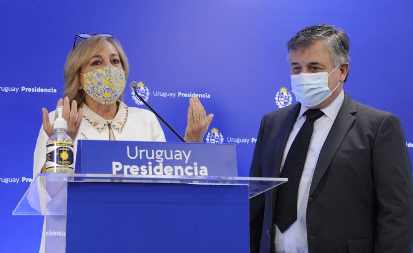 Paula Santilli y Omar Paganini, el 2 de setiembre, durante la conferencia de prensa en la Torre Ejecutiva, en Montevideo.