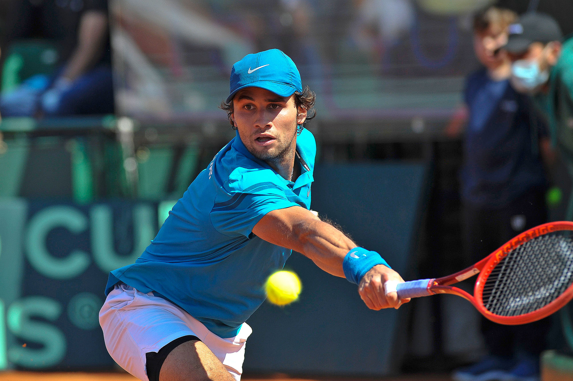 Francisco Llanes, durante el encuentro con Botic Van de Zandschulp, el sábado 18 de setiembre, en el Carrrasco Lawn Tennis.