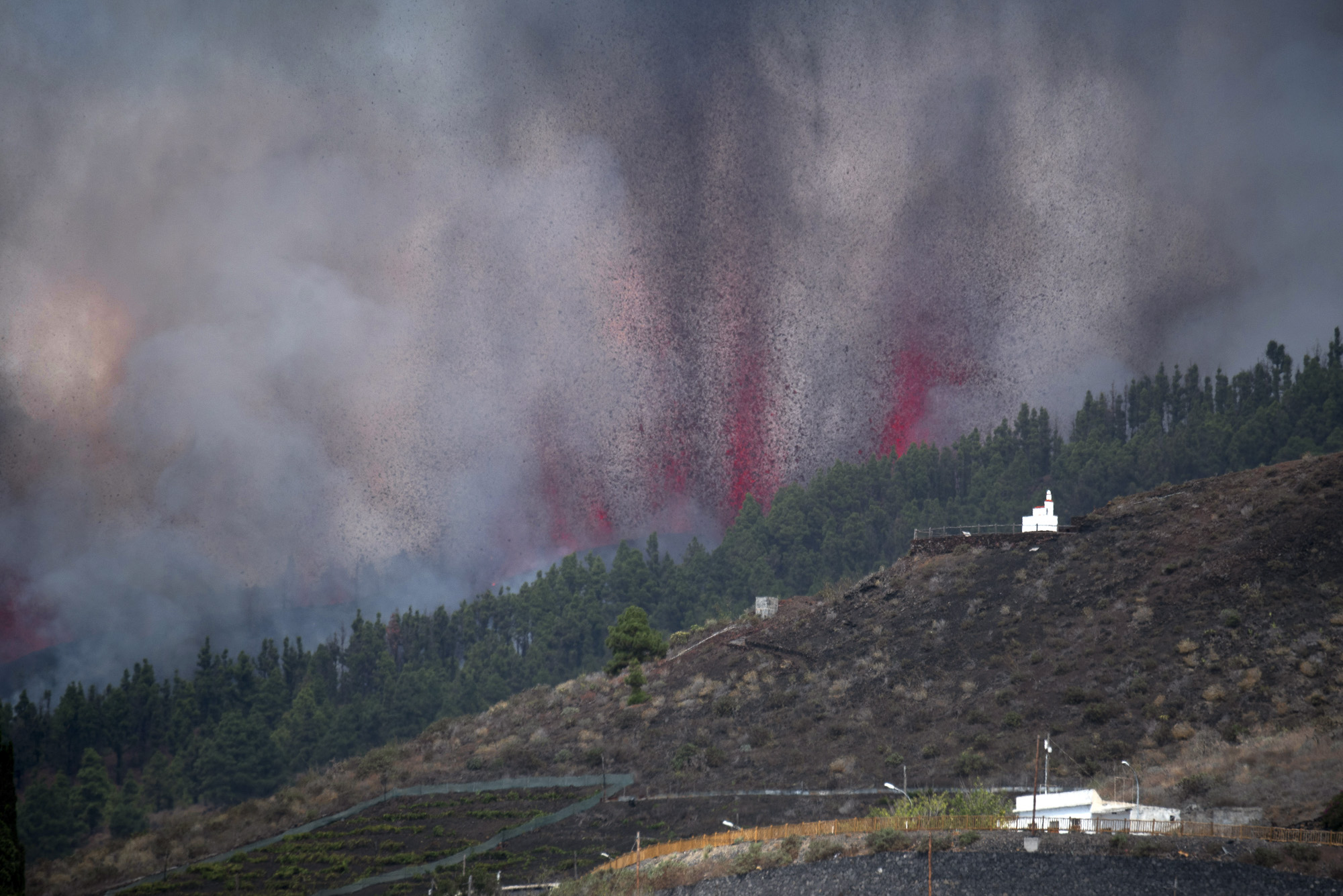 Lava producto de la erupción del Monte Cumbre Vieja, en El Paso, vista desde Los Llanos de Aridane, en canaria de La Palma.
