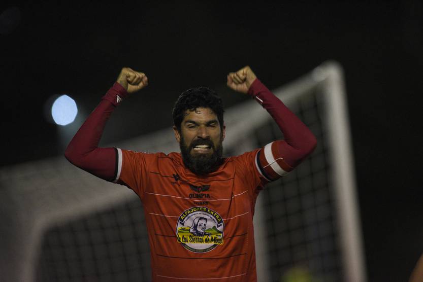 Sebastián Abreu, de Olimpia, tras convertir de penal ante Barrio Olímpico, en la fecha 1 del Campeonato Minuano, en el Parque Artigas, en Minas.