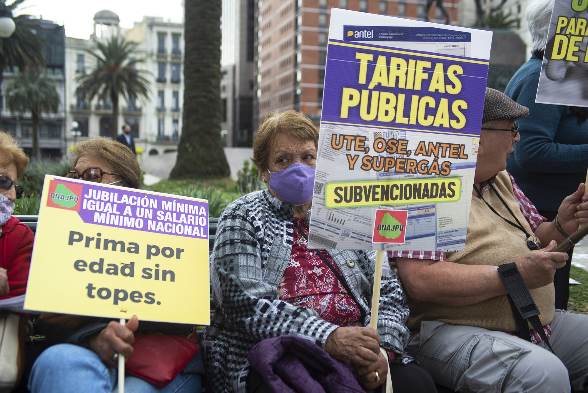 Manisfestación en el Día Internacional del Adulto Mayor frente a Presidencia en Plaza Independencia. (archivo, octubre de 2020)