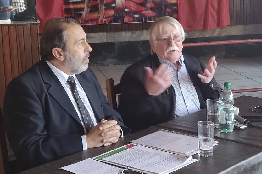 Enrique Malel y Hermes Pastorini, durante la conferencia de prensa, en Paysandú.