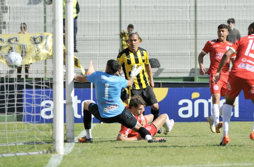 Maximiliano Pereira, de Peñarol, luego del gol a Rentistas, en el Estadio Domingo Burgueño Miguel.