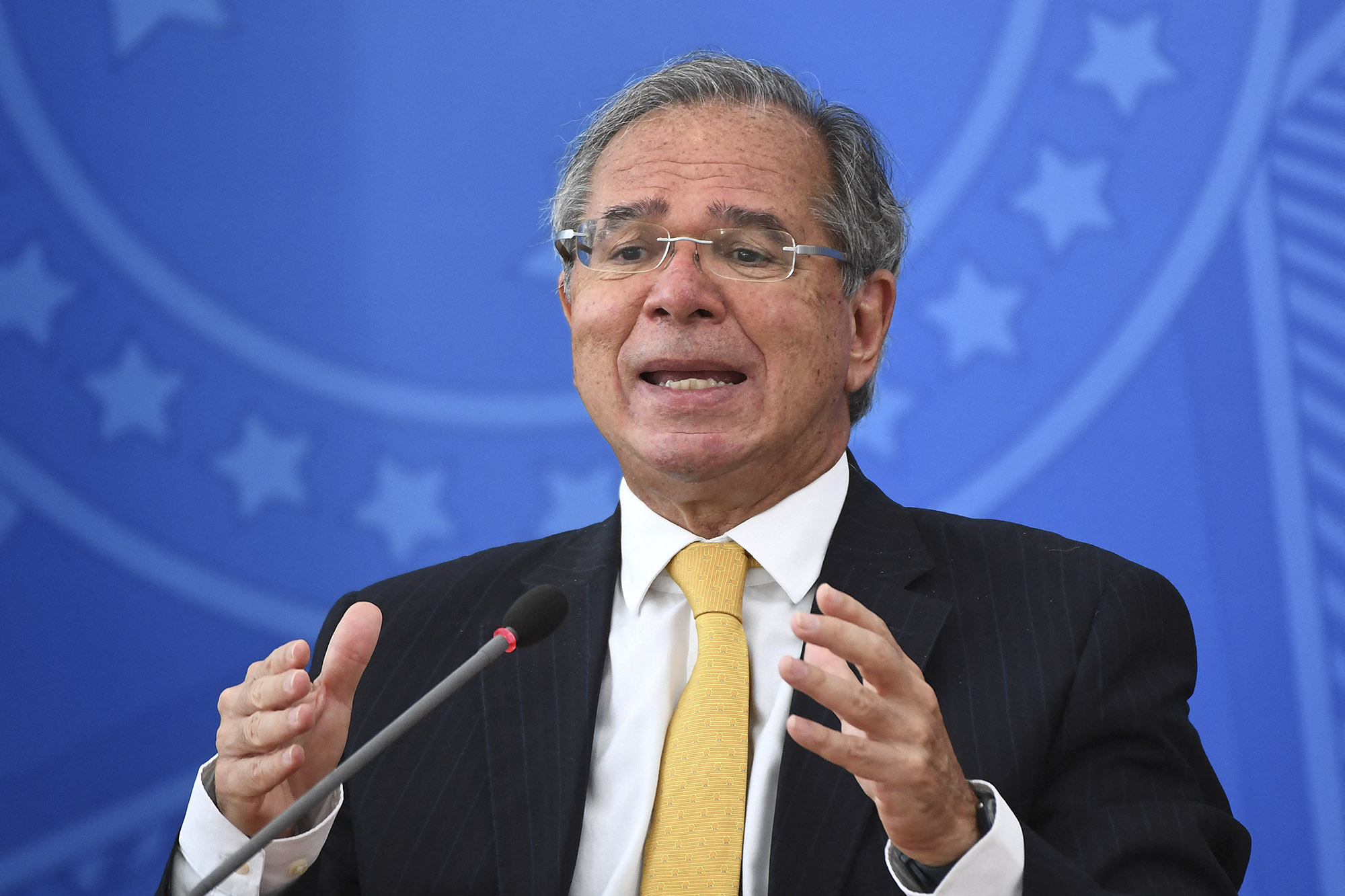 El ministro de Finanzas de Brasil, Paulo Guedes, durante una conferencia de prensa en el palacio de Planalto, el 5 de febrero de 2021.