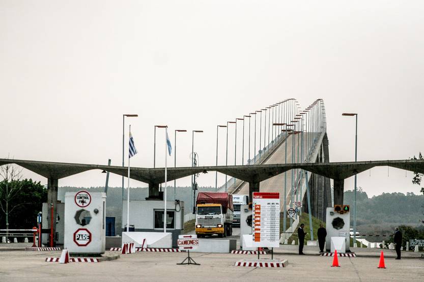 Frontera aduana entre Uruguay y Argentina en el Puente Internacional San Martín