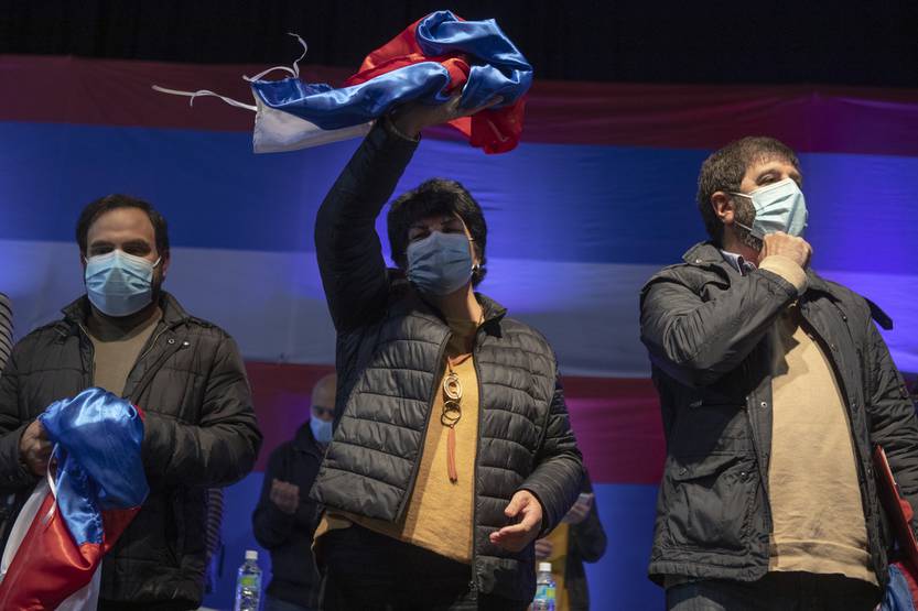 Gonzalo Civila, Fernando Pereira e Ivonne Pasada al final del Congreso del Frente Amplio, el 3 de octubre en el Palacio Peñarol.