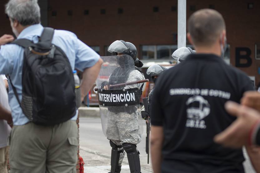 Manifestación de trabajadores del transporte en la terminal de Tres Cruces, el viernes 10.