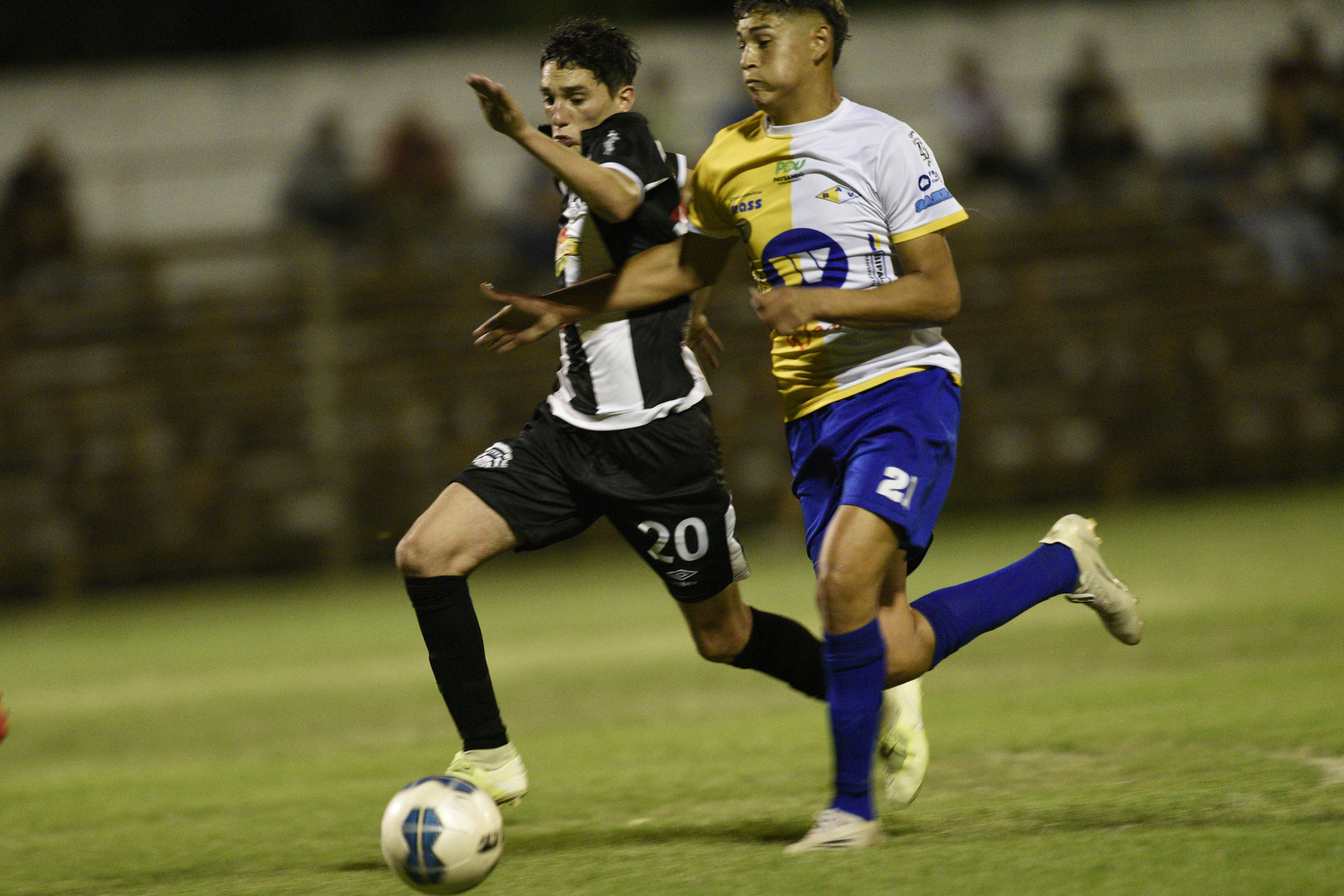 Maximiliano Machín, de Wanderers, Julio Melendrez, de Bella Vista. 17ª Copa Nacional de Clubes, divisional B, el sábado 11 de diciembre de 2021 en el Estadio Eduardo Martínez Monegal en Canelones.