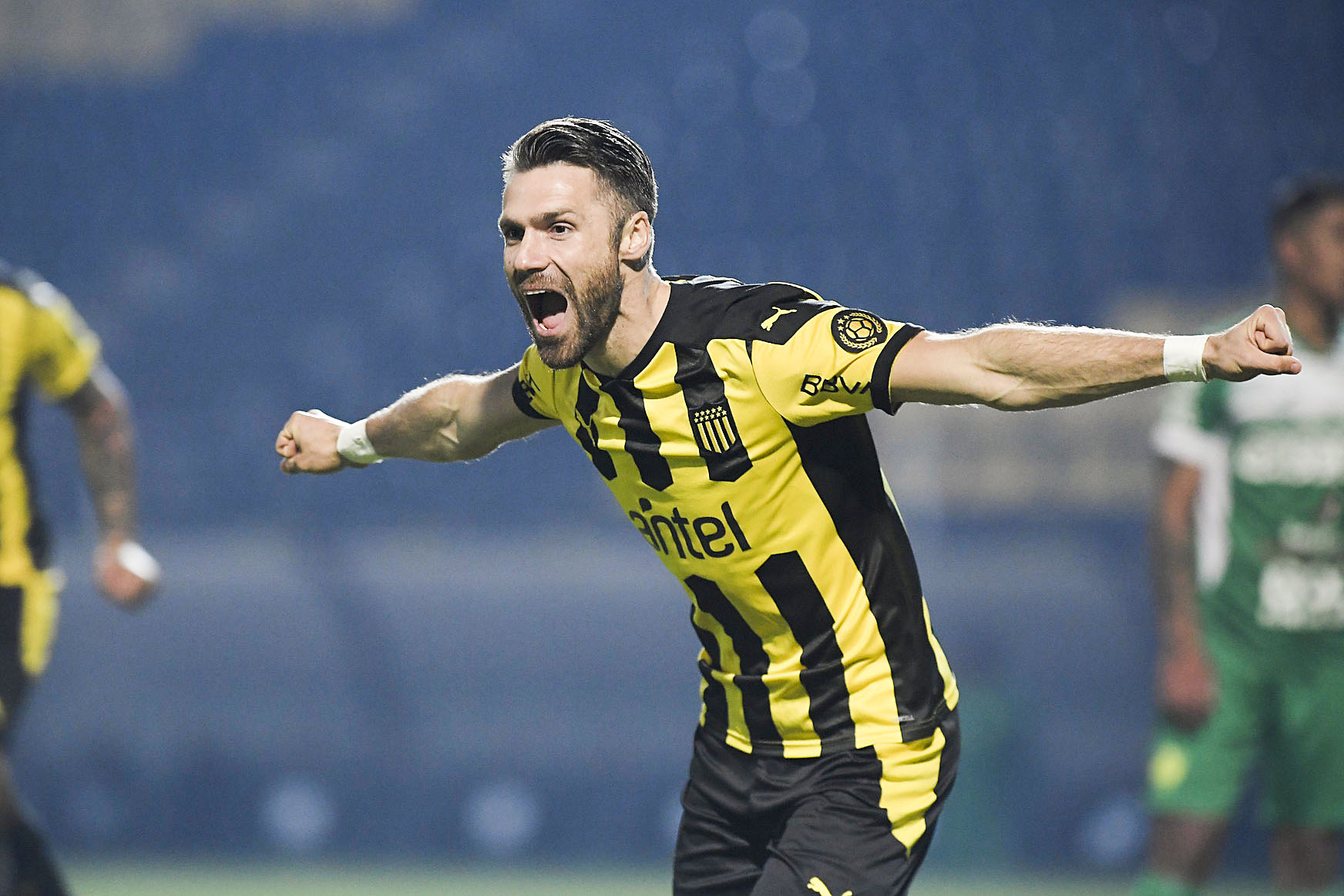 Gary Kagelmacher, de Peñarol, luego de convertir el segundo de Peñarol a Cerrito, en el estadio Campeón del Siglo (archivo, julio de 2021).