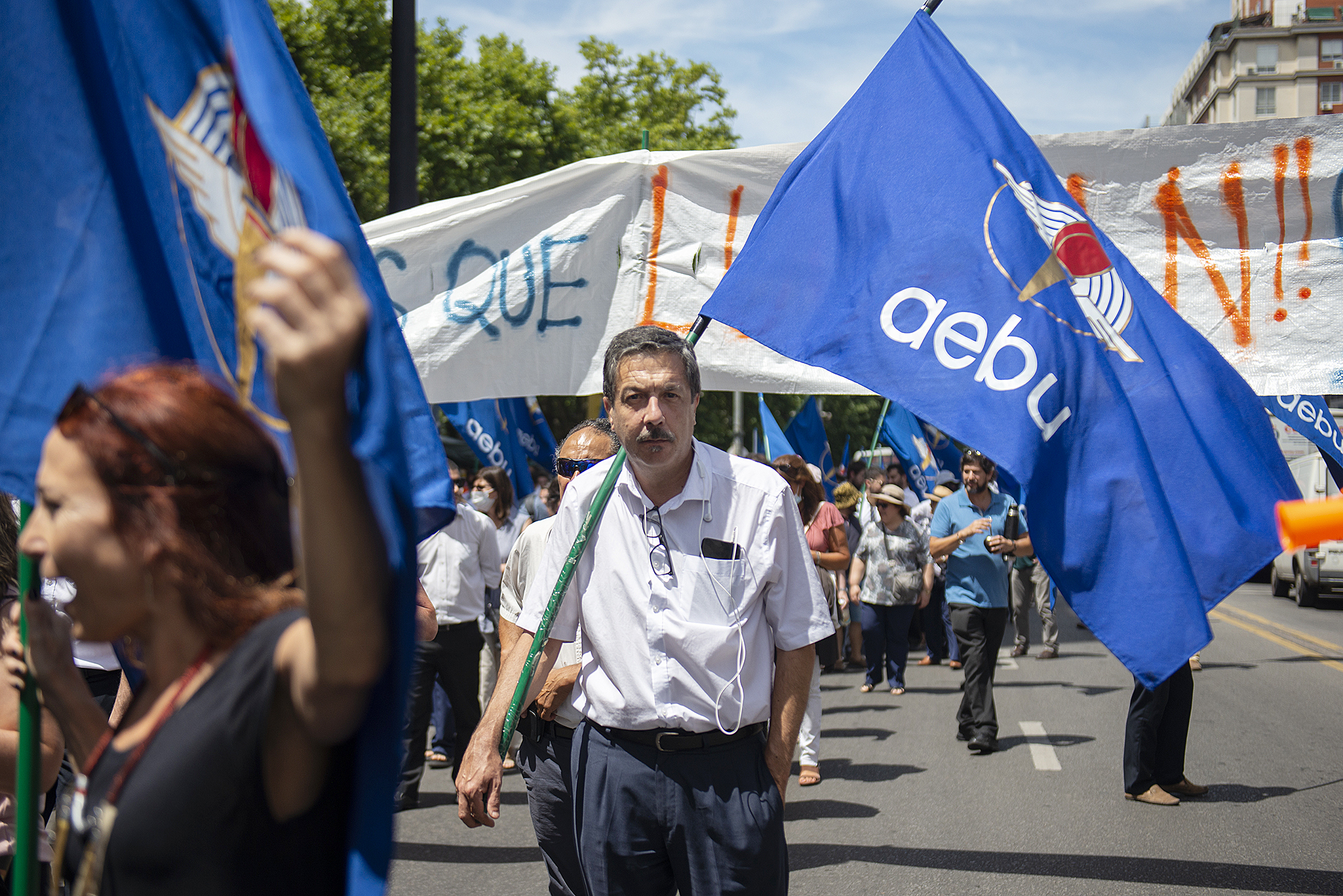 Movilización de AEBU, el 28 de diciembre, por la Avenida 18 de Julio.