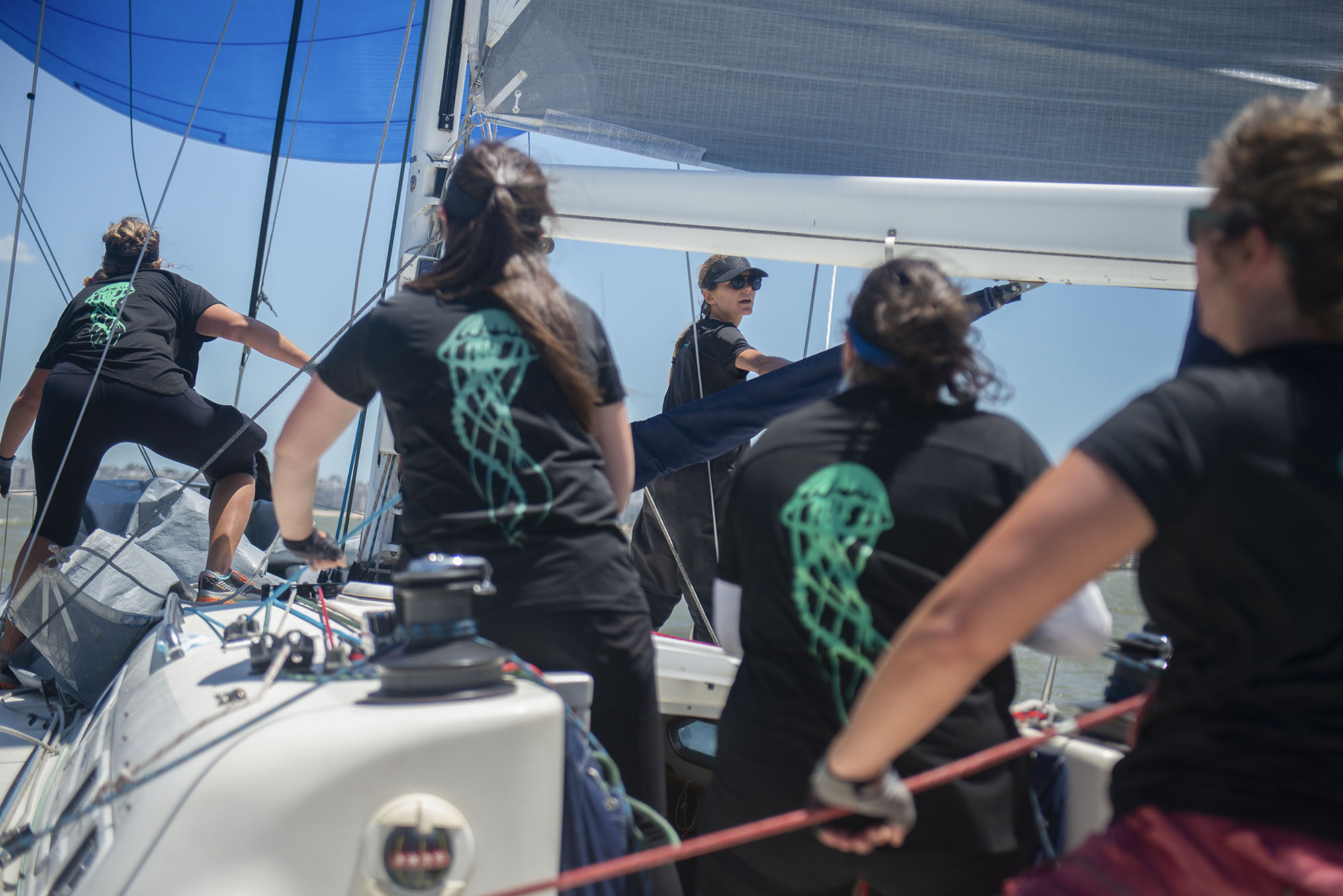 Parte del equipo del Medusa Sailing Team, durante el entrenamiento, el 9 de enero, en Montevideo.