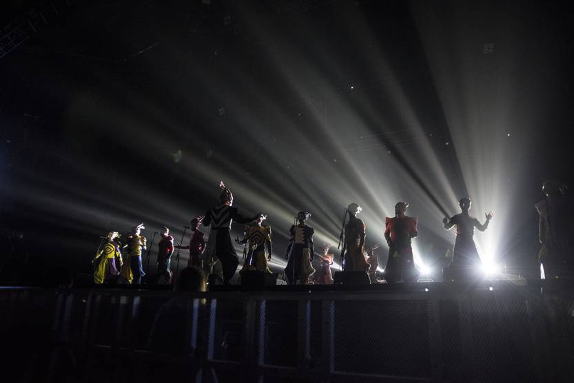 Murga Asaltantes con Patente, durante el Avant Premier del Carnaval, el 18 de enero en el Antel Arena.