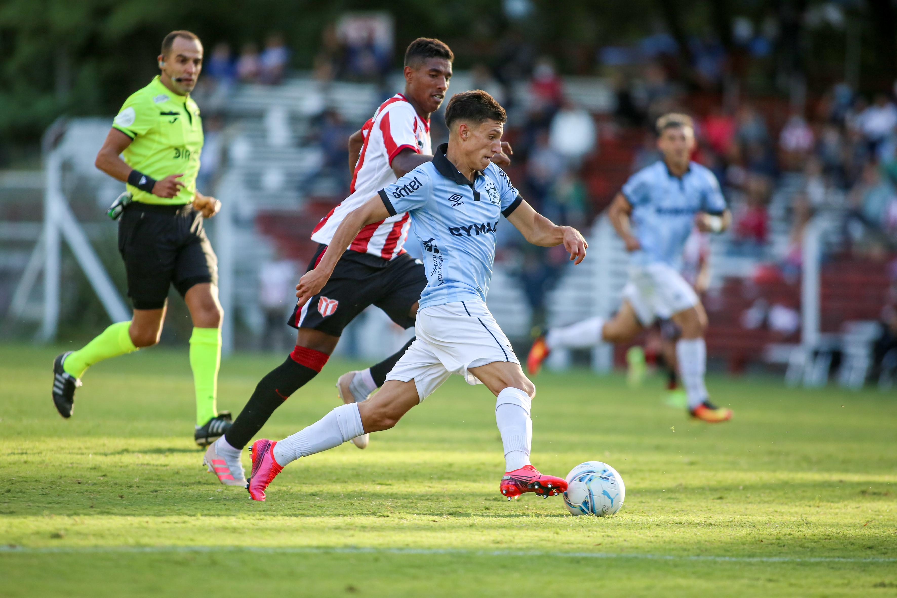 Marcos Montiel , de River Plate y Nicolás Quagliata ,de Wanderers en el estadio Federico Omar Saroldi. Foto:Mauricio Zina