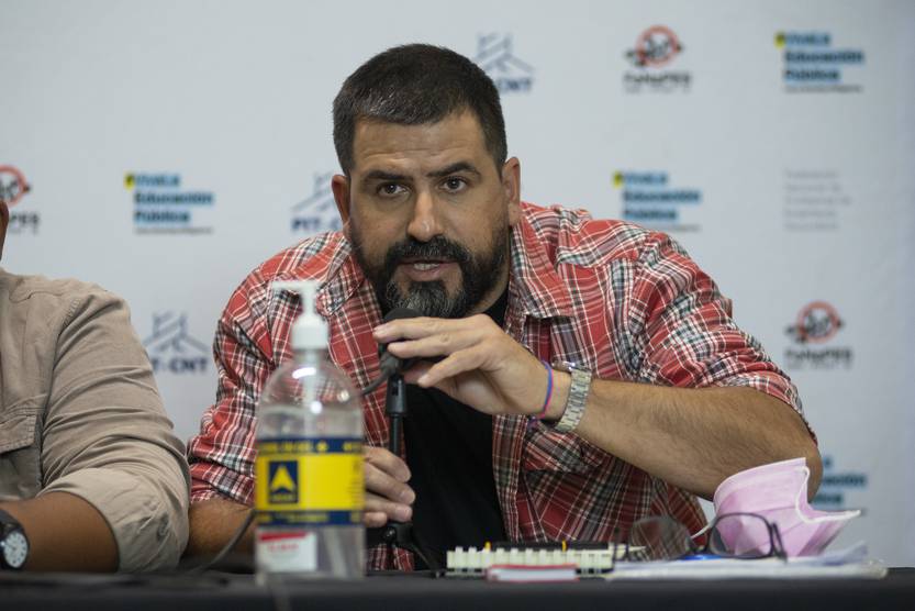 Emiliano Mandacen, el 7 de febrero, durante una conferencia en la sede de la Federación Nacional de Profesores de Educación Secundaria.