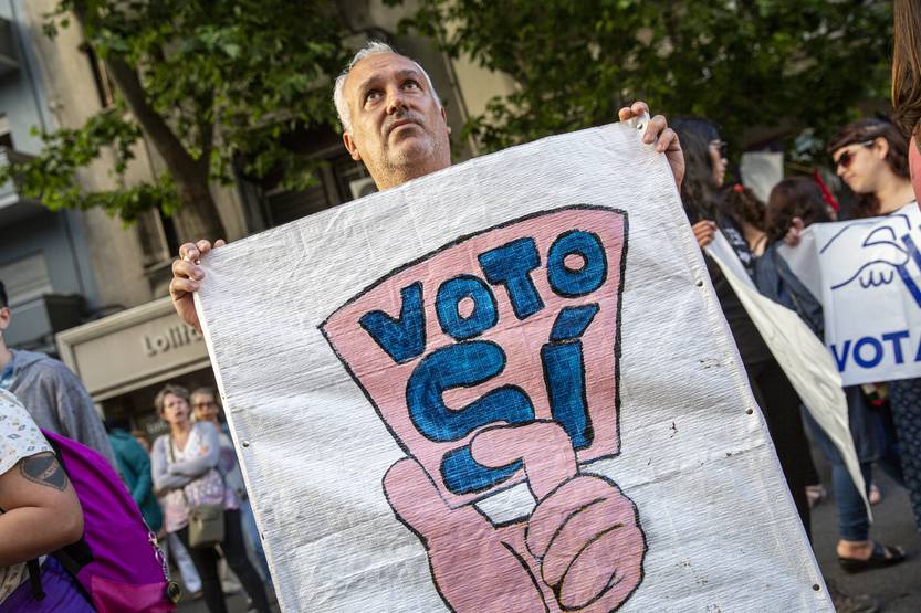 Acto de la Comisión Nacional por el Si, en la explanada de la Universidad de la República. (archivo diciembre de 2021) Foto: Mauricio Zina