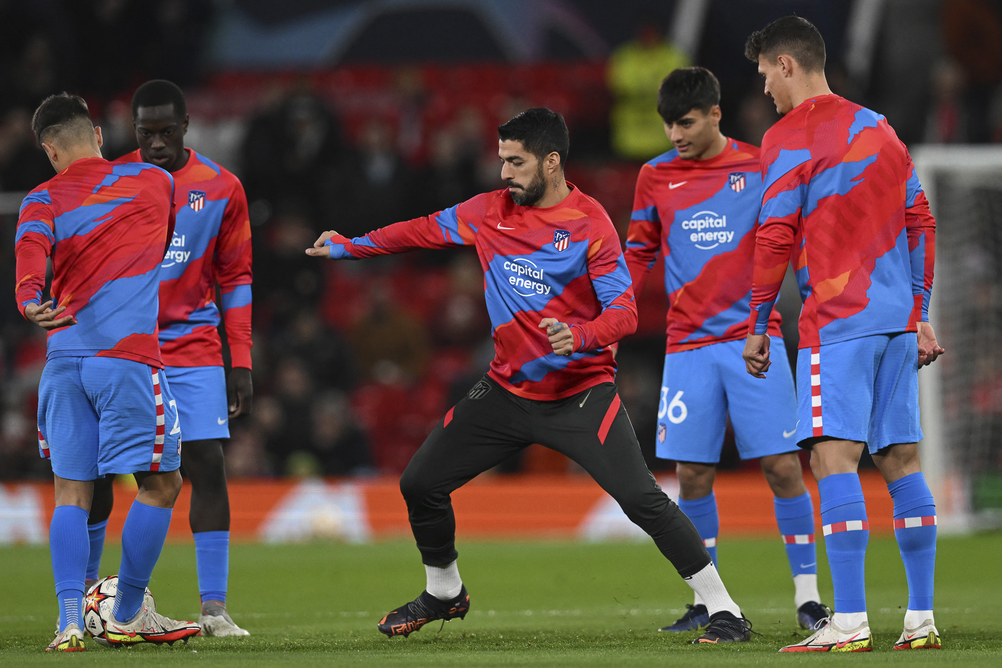 Luis Suárez, durante el calentamiento previo al partido Manchester United - Atlético Madrid, por UEFA Champions League, en el estadio Old Trafford.