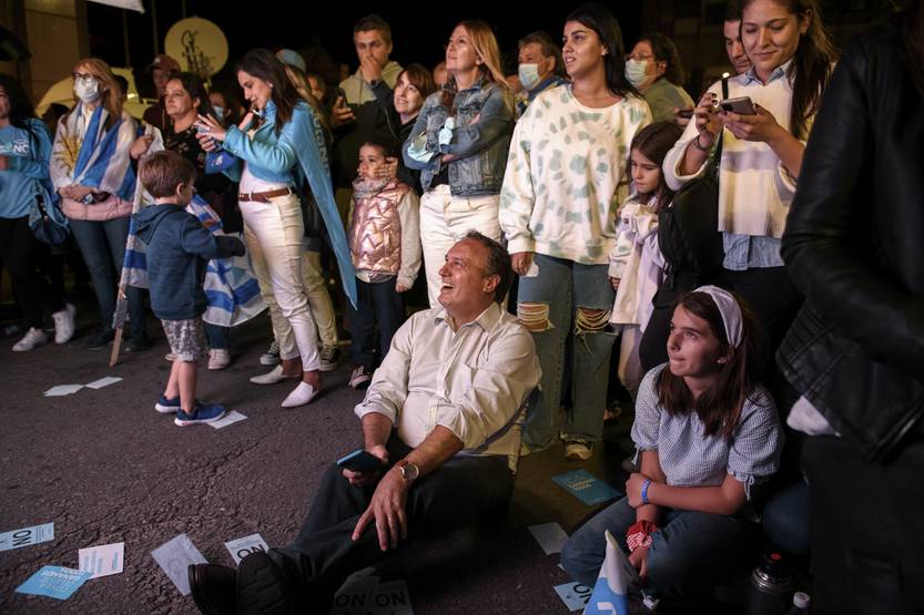 Partidarios del NO siguen el discurso de Luis Lacalle Pou en Plaza Independencia.