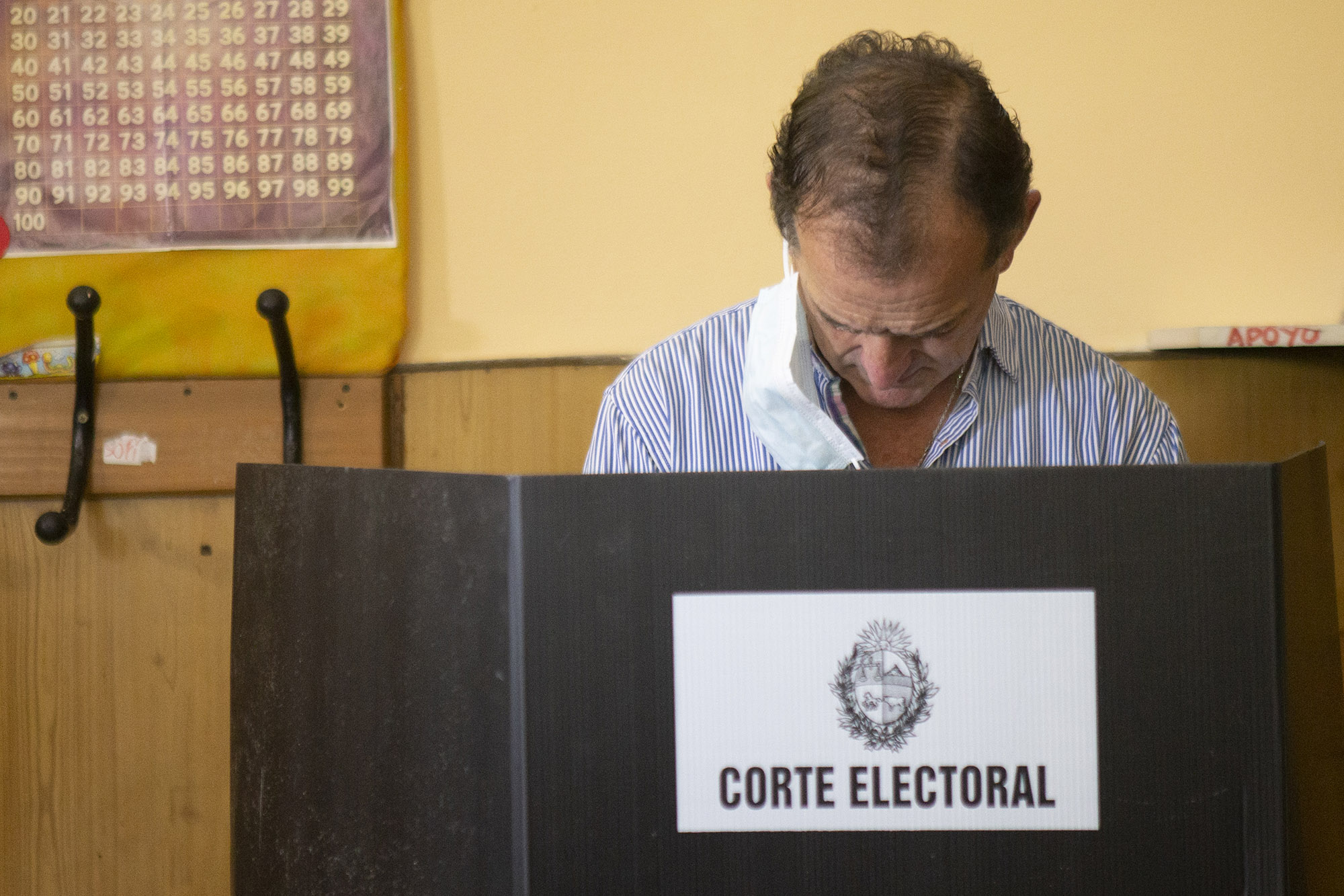 Voto del senador y líder de Cabildo Abierto, Guido Manini Rios en el Colegio Adoratrices