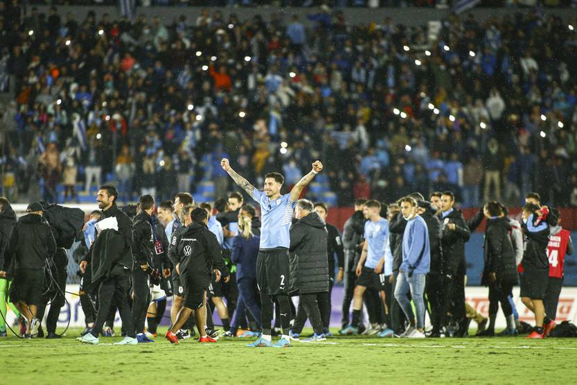 José María Giménez, al final del partido ante Perú, en el estadio Centenario. (archivo, marzo de 2022 )