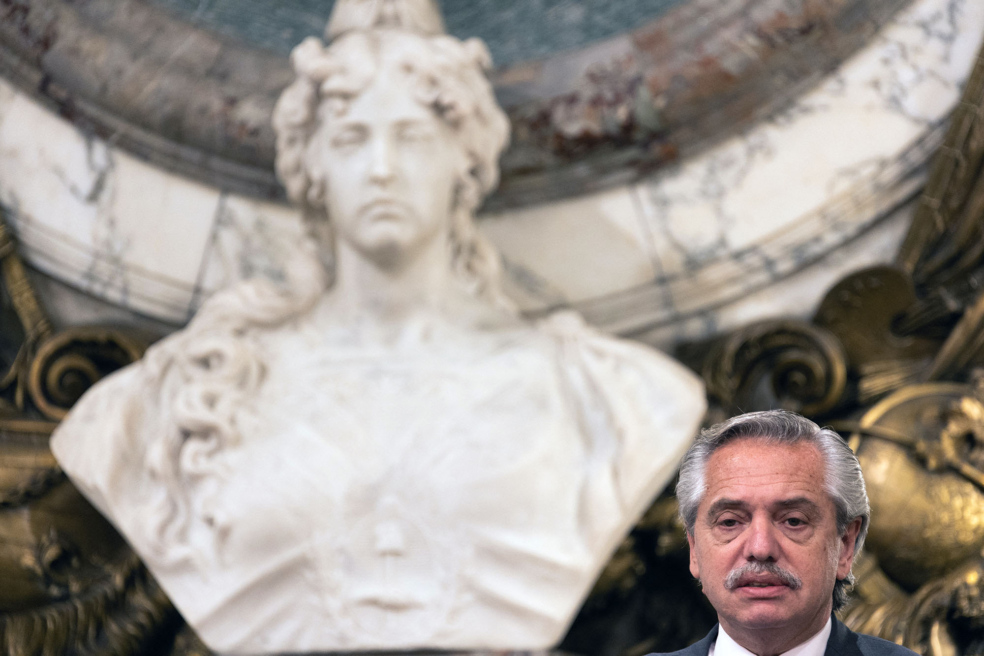 Alberto Fernández, durante una conferencia de prensa, el 7 de abril, en la Casa Rosada en Buenos.