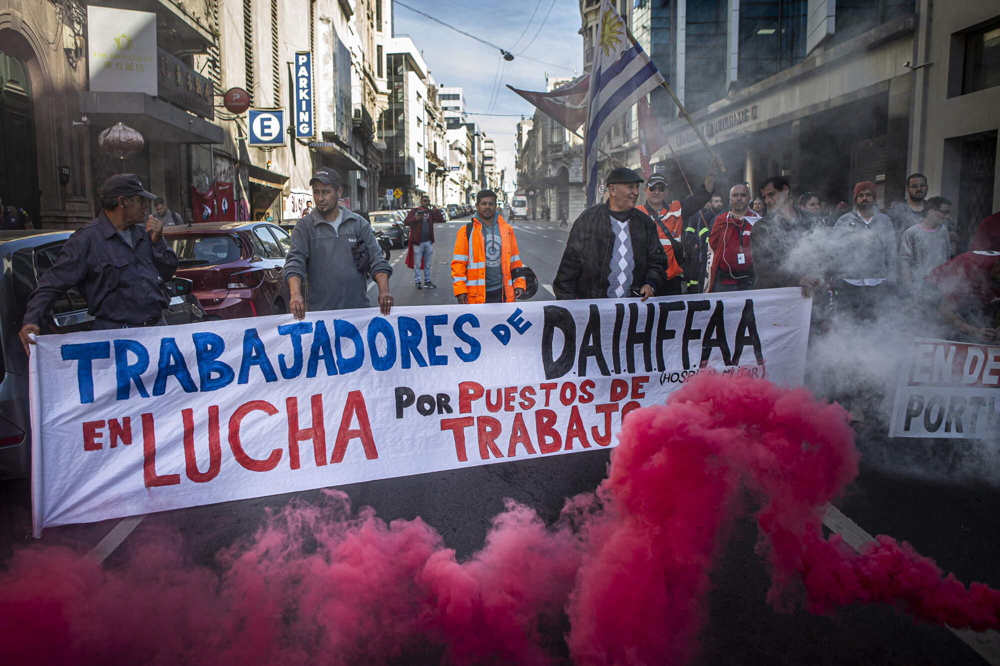 Movilización del sindicato portuario, el 9 de mayo, frente al la Dirección Nacional de Trabajo.