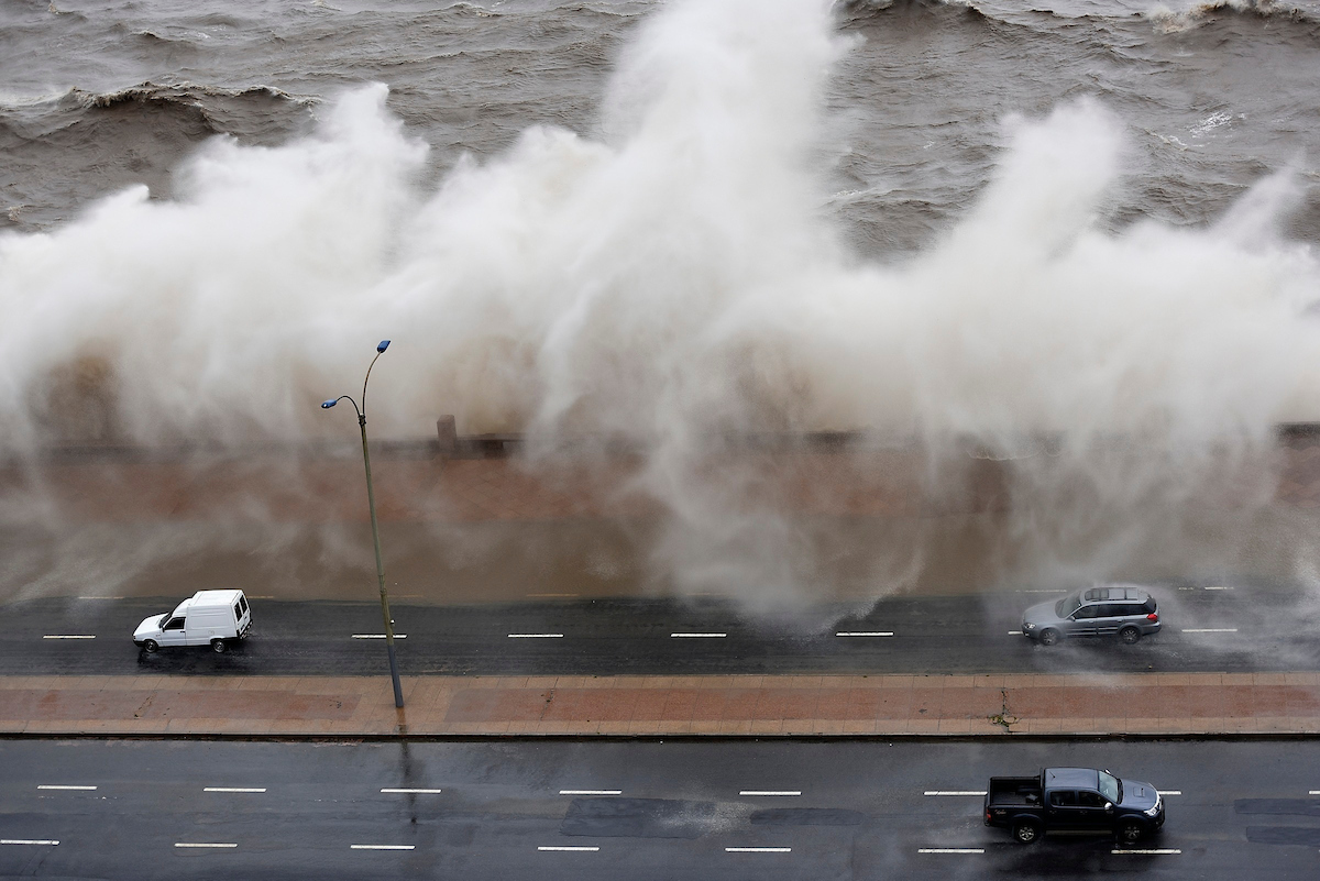 Ciclón extra tropical frente a la Rambla Sur, en Montevideo (archivo, octubre de 2016)