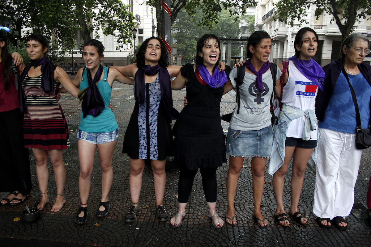 Concetración bajo la consigna "Ni una muerta más "Feministas en Alerta y en las Calles", en la Plaza Cagancha, en repudio al asesinato de Lola Chomnalez en Valizas (archivo, diciembre de 2014).