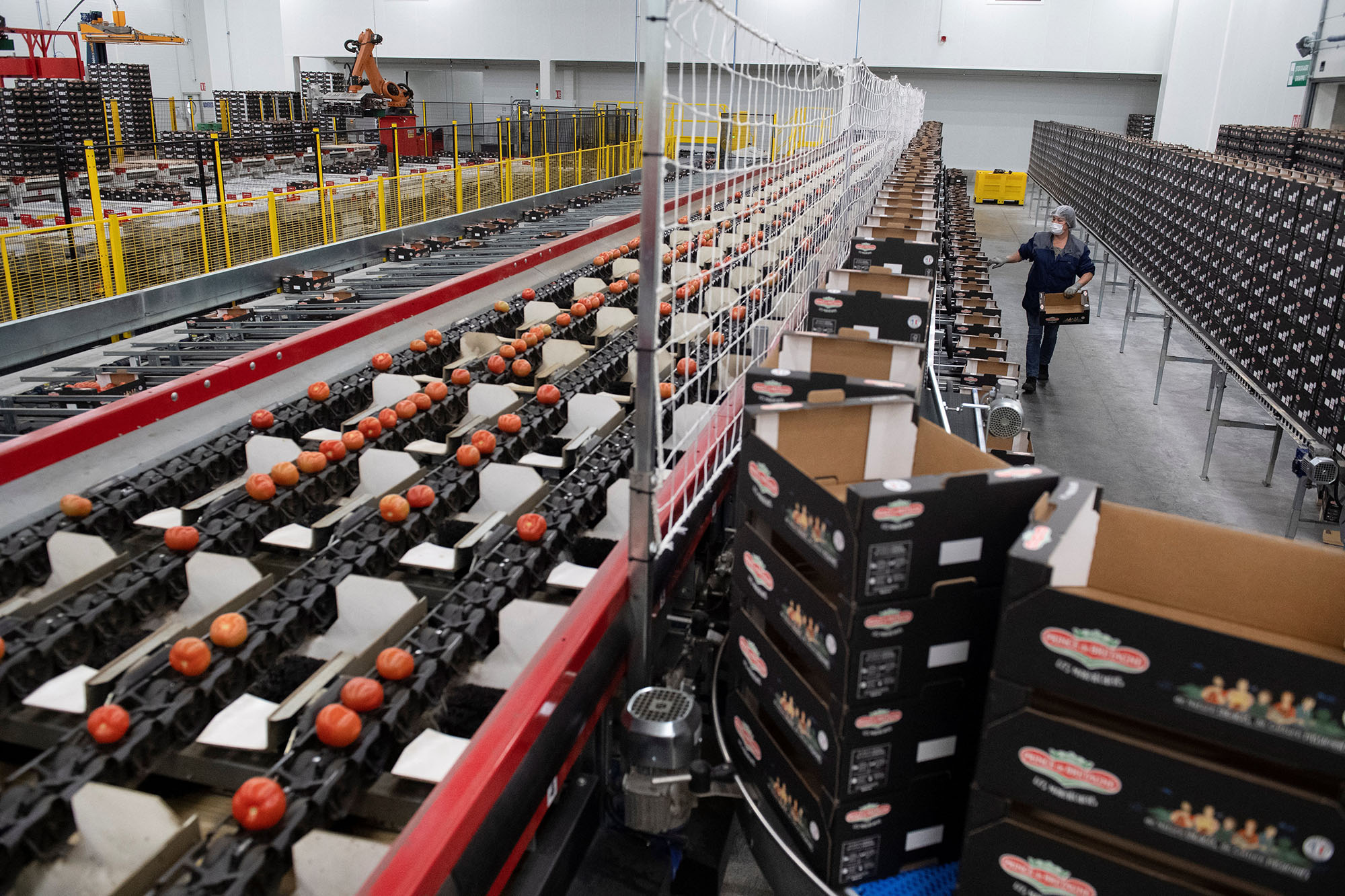 Planta de empaquetado de tomates en Saint-Pol-de-Léon, Francia. (archivo, mayo de 2022).
