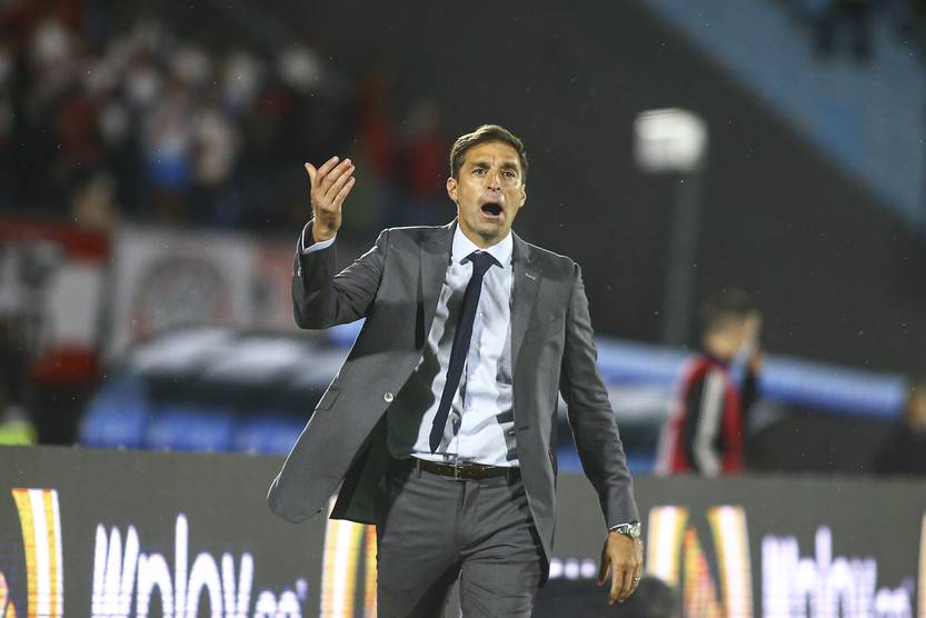 Diego Alonso, durante un partido por las eliminatorias sudamericanas, en el estadio Centenario (archivo, marzo de 2022).