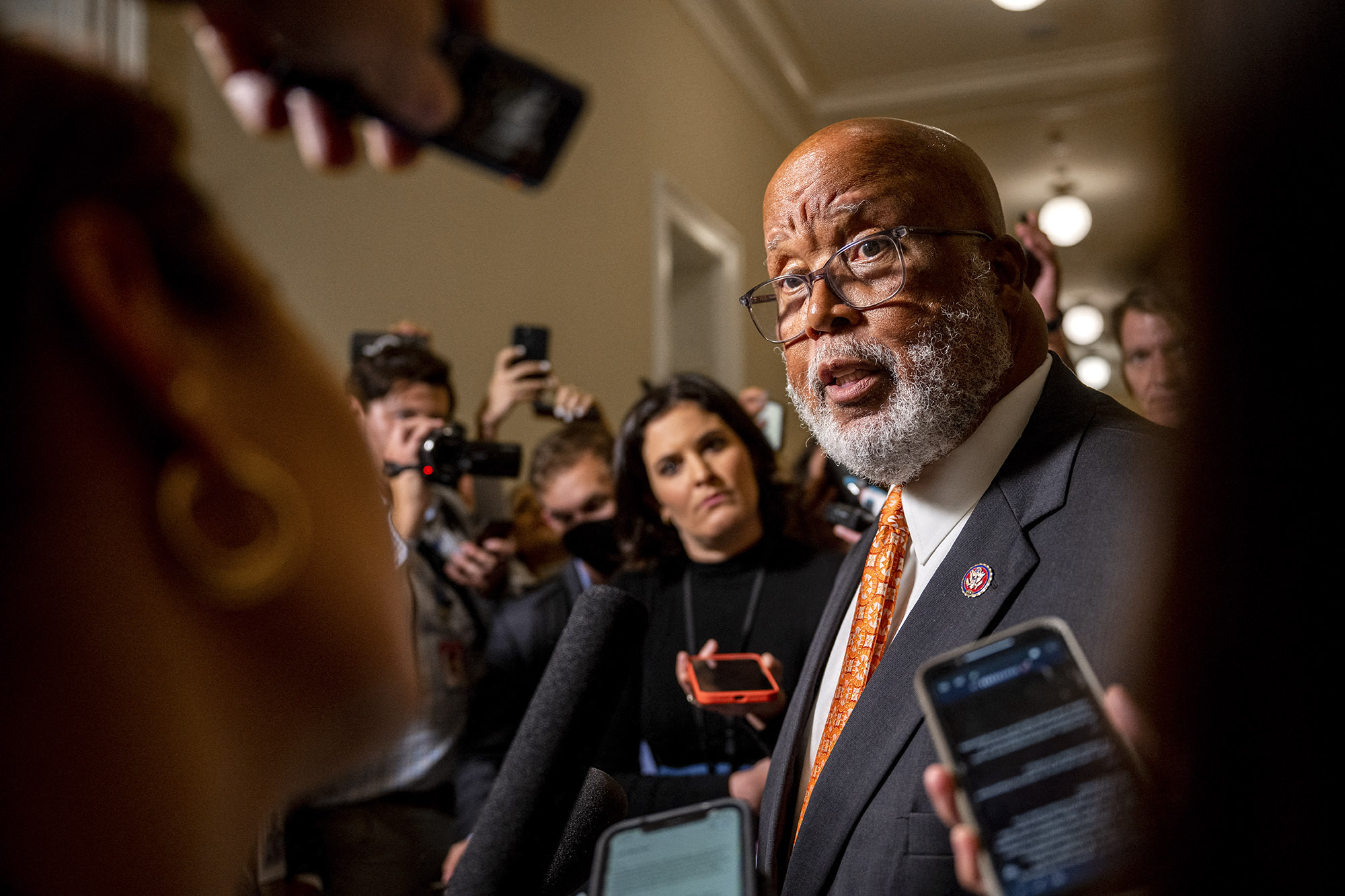 Bennie Thompson, presidente del Comité Selecto de la Cámara de Representantes para investigar el ataque del 6 de enero al Capitolio habla con la prensa el jueves 23.