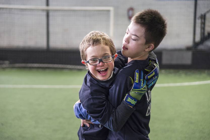 Entrenamiento de la escuela Abriendo Caminos, en el complejo Concepción de Fútbol 5, en Montevideo.