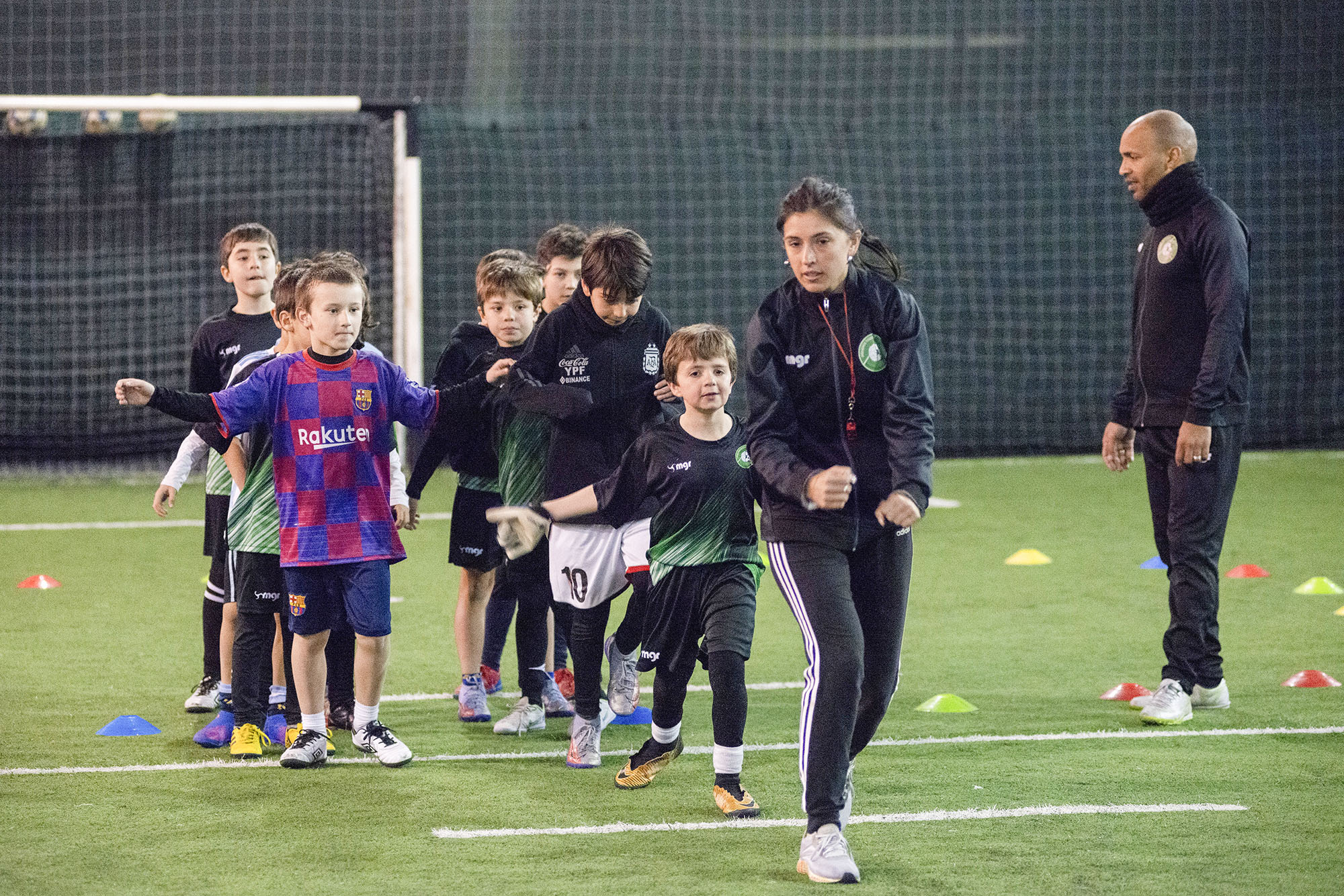 Valentina Rodríguez y Mario Regueiro, en la escuelita Primeros toques.