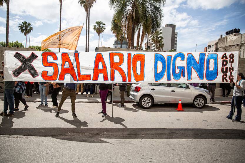 Concentración de docentes y funcionarios de educación universitaria en el Ministerio de Trabajo y Seguridad Social, el 5 de octubre, en Montevideo.