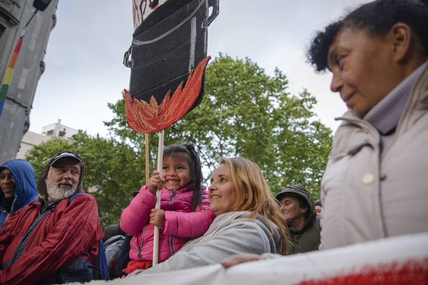 Movilización Red de Ollas Populares, el 11 de octubre, en Montevideo.