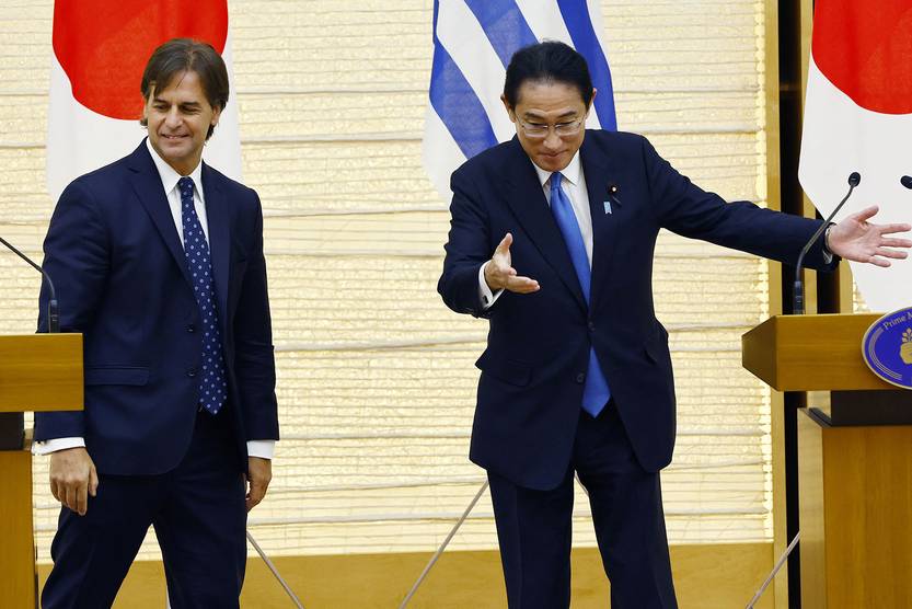 Fumio Kishida y Luis Lacalle Pou, el 28 de octubre, en Tokio.