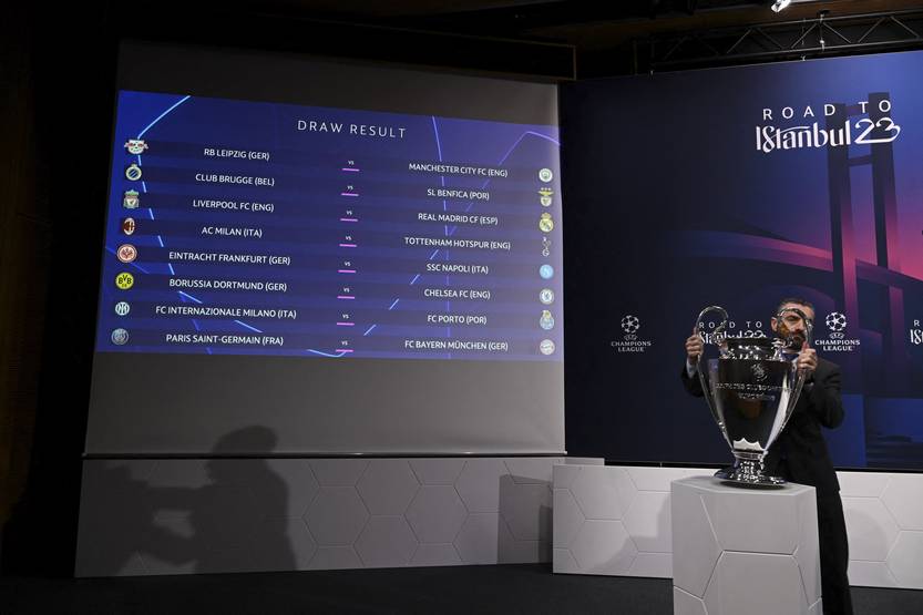 Final del sorteo de los cruces de octavos de final de la UEFA Champions League en Nyon, Suiza.