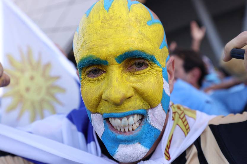 Hinchas de la selección uruguaya, previo al partido por el Grupo H de la Copa Mundial de Qatar 2022 ante Corea del Sur, el 24 de noviembre, en el Education City Stadium en Al-Rayyan, al oeste de Doha.