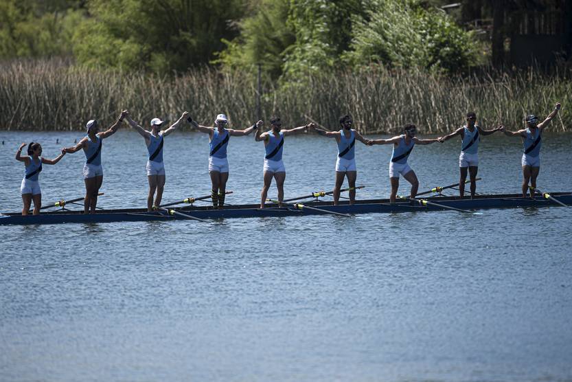 El equipo de Montevideo Rowing Club, campeón en el Ocho con timonel.