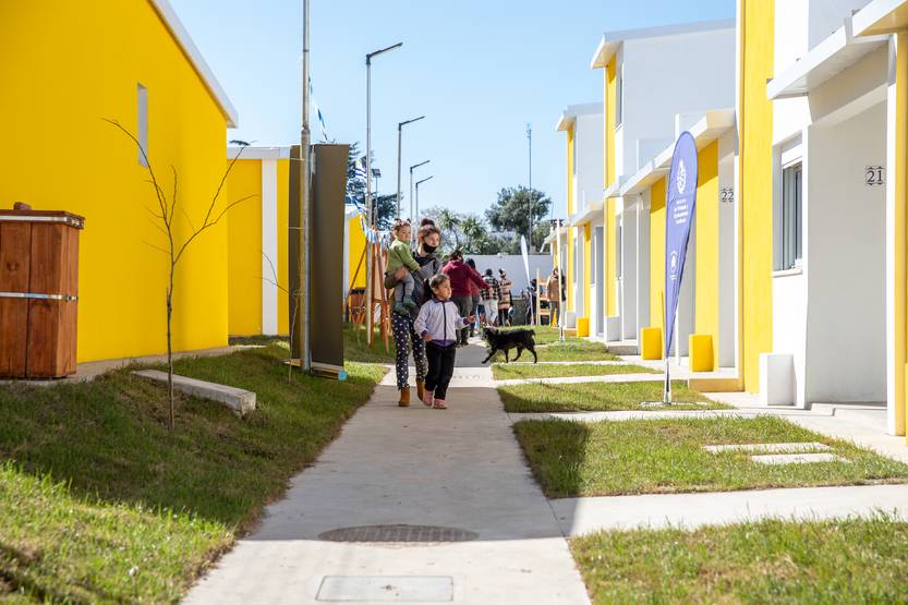 Entrega de viviendas a través del Plan Juntos del Ministerio de Vivienda y Ordenamiento Territorial, en el barrio Campo Galusso de la Unión en Montevideo (archivo, agosto de 2021).