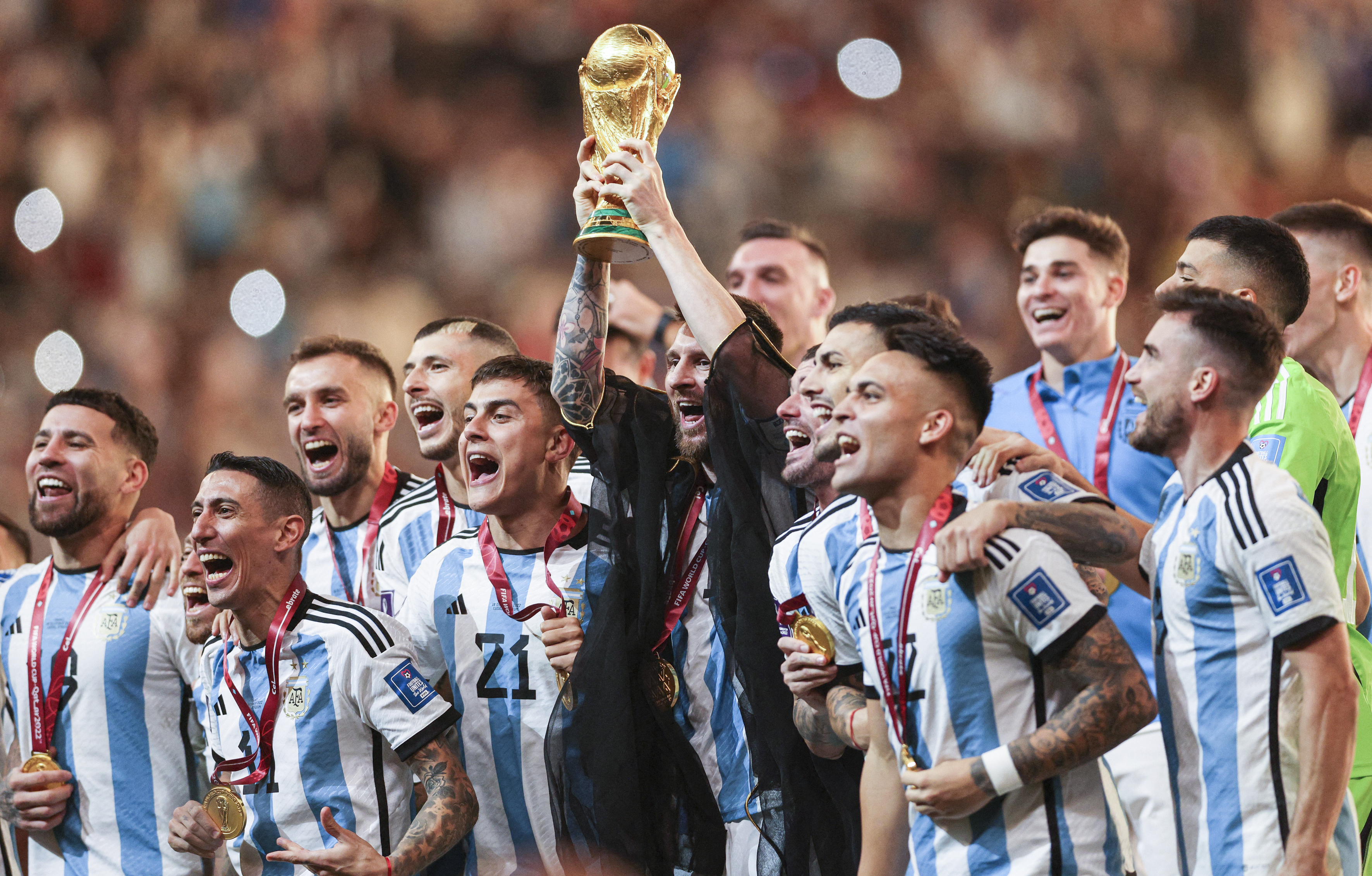 Jugadores de Argentina celebran la obtención de la Copa Mundial de la FIFA, en el estadio Lusail, en Doha.