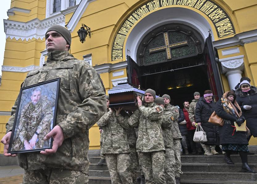 Servicio fúnebre del soldado ucraniano Volodimir Yezhov, caído en enfrentamientos con tropas rusas en la ciudad de Bajmut en la catedral de Volodimir, en Kiev.