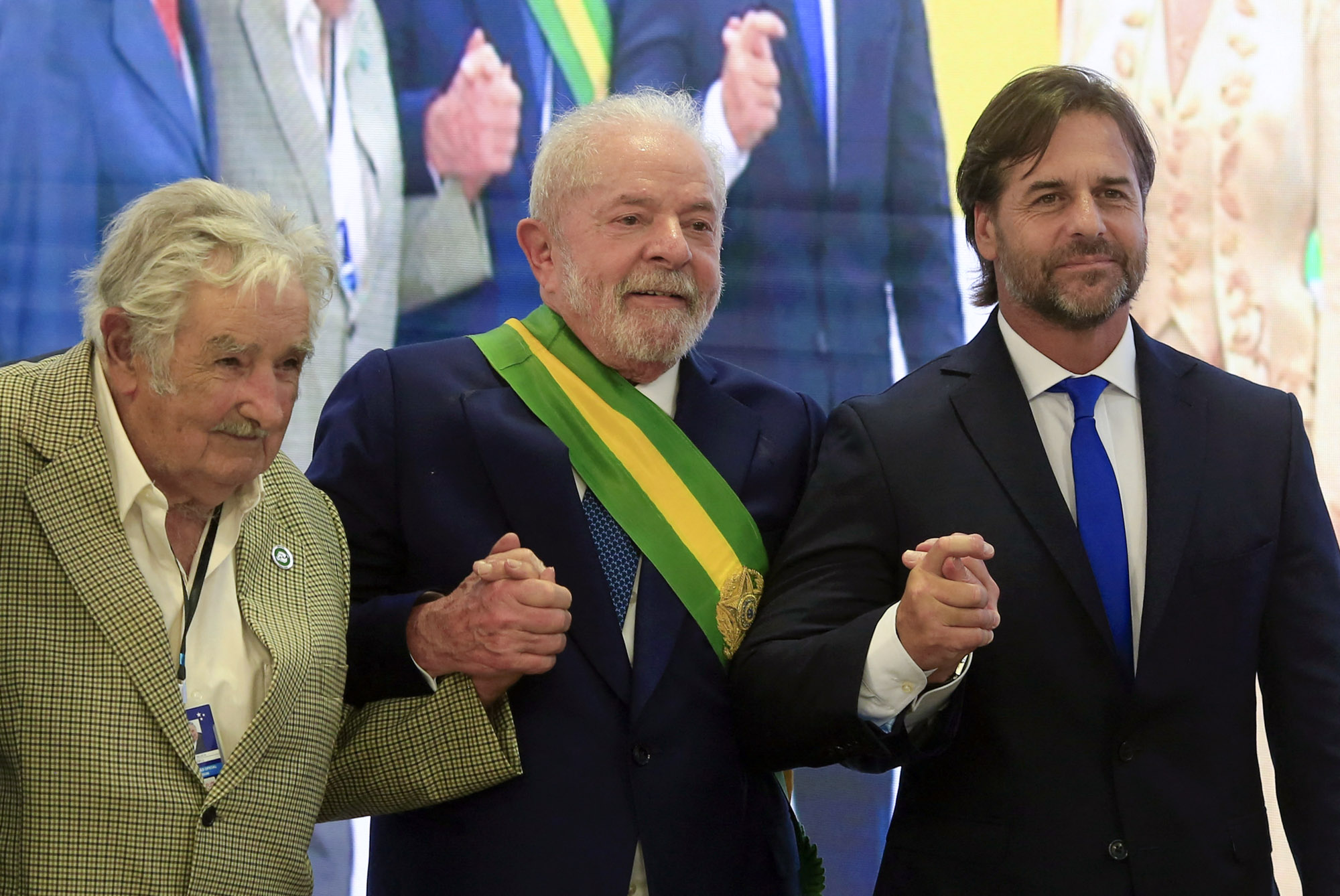 José Mujica, Luiz Inácio Lula da Silva y Luis Lacalle Pou, el 1 de enero en Brasilia.