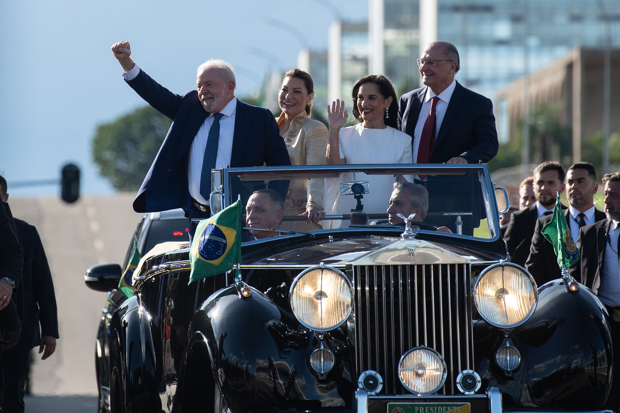 Luiz Inácio Lula da Silva, Rosângela da Silva, Maria Lúcia Ribeiro y Geraldo Alckmin, durante la asunción de Luiz Inácio Lula da Silva como presidente de Brasil, en la Explanada de los Ministerios, en Brasilia (archivo, enero de 2023).