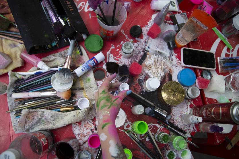 Preparativos de la Murga Gente Grande, el 26 de enero, previo a su actuación en el Teatro de Verano.
